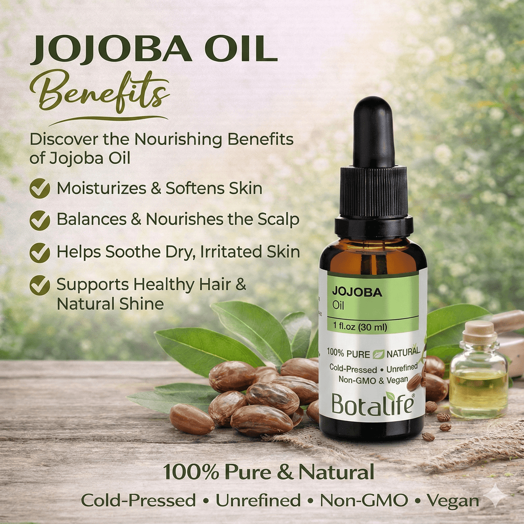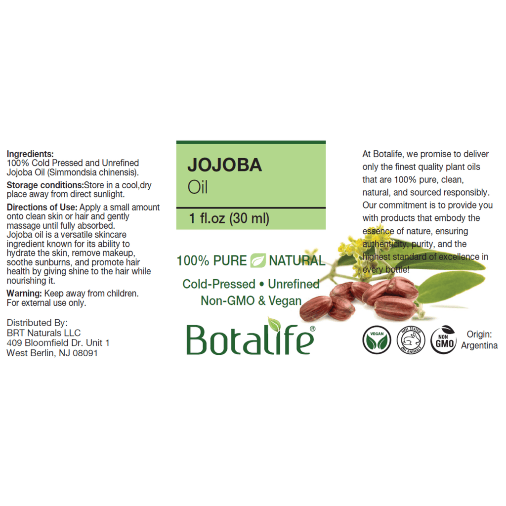 Nourish and balance your skincare routine with Botalife Jojoba Oil, a 100% pure, cold-pressed oil derived from premium Simmondsia chinensis. Known for its lightweight texture and versatility, jojoba oil is a staple for natural skin and hair care routines.