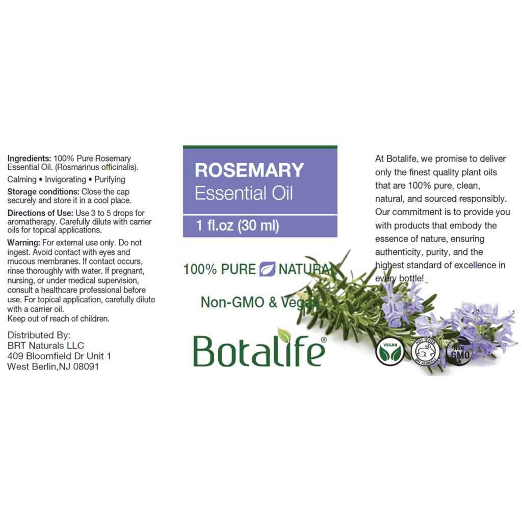 Invigorate your senses with Botalife Rosemary Essential Oil, a 100% pure essential oil distilled from premium Rosmarinus officinalis. Known for its fresh, herbal aroma, rosemary oil is a popular choice for aromatherapy and wellness routines.