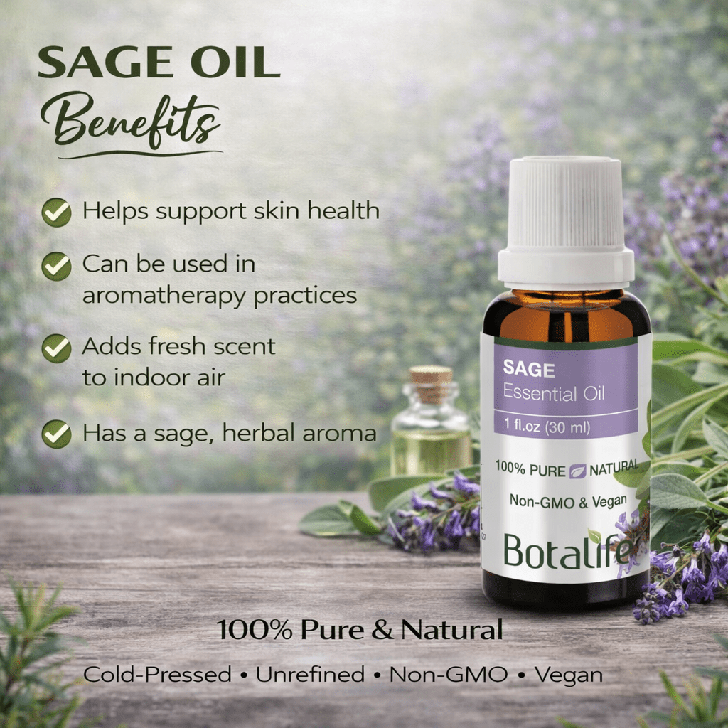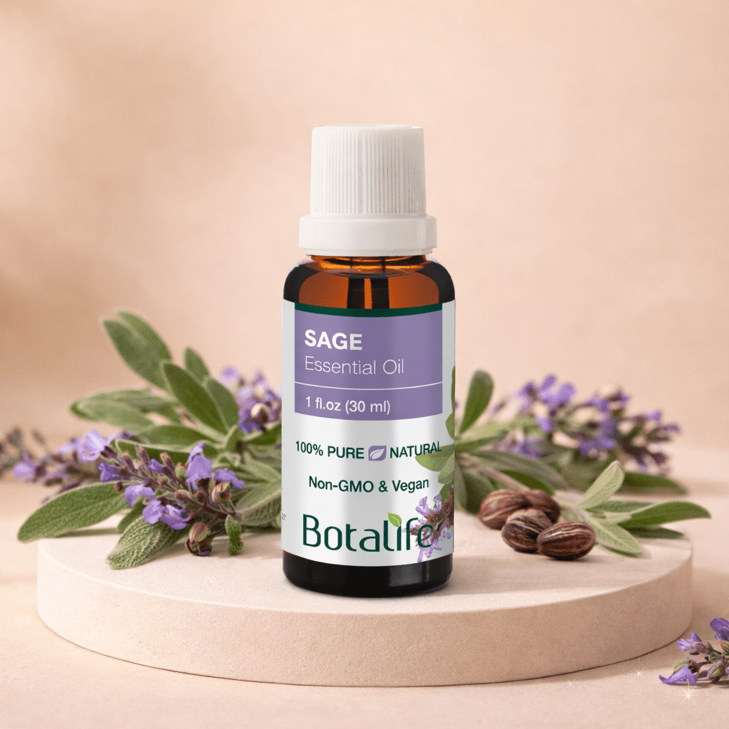 Create a balanced environment with Botalife Sage Essential Oil, a 100% pure essential oil distilled from premium Salvia officinalis. Known for its herbal, earthy aroma, sage oil is a popular choice for aromatherapy and diffuser blends.